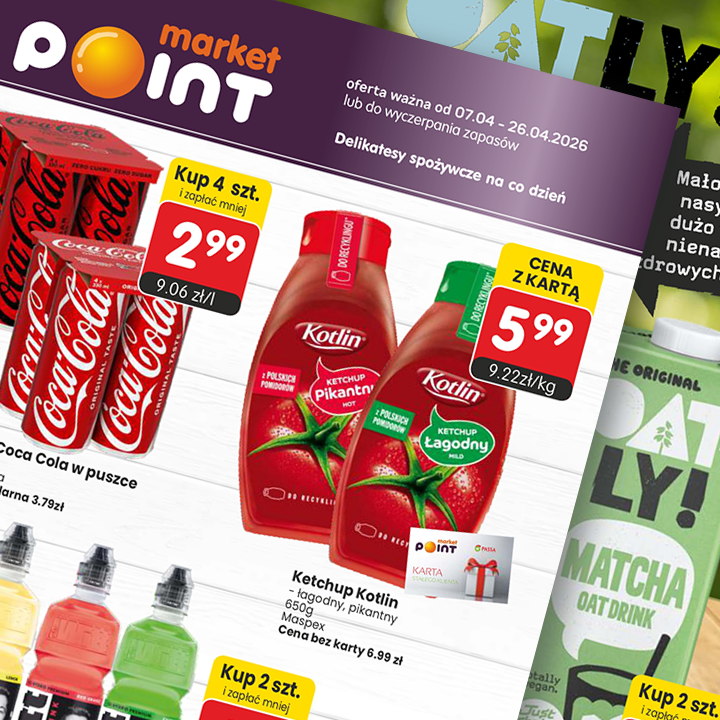Gazetka Market Point 07-26.04.2026Gazetka PASSA 09-18.04.2026Ulotka weekendowa 16-18.04.2026System kaucyjny